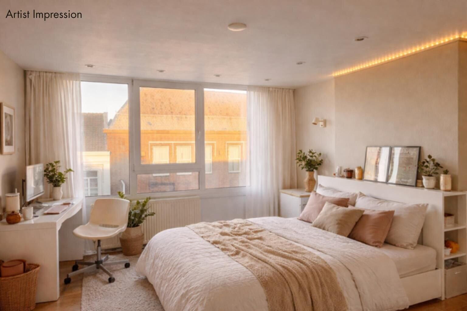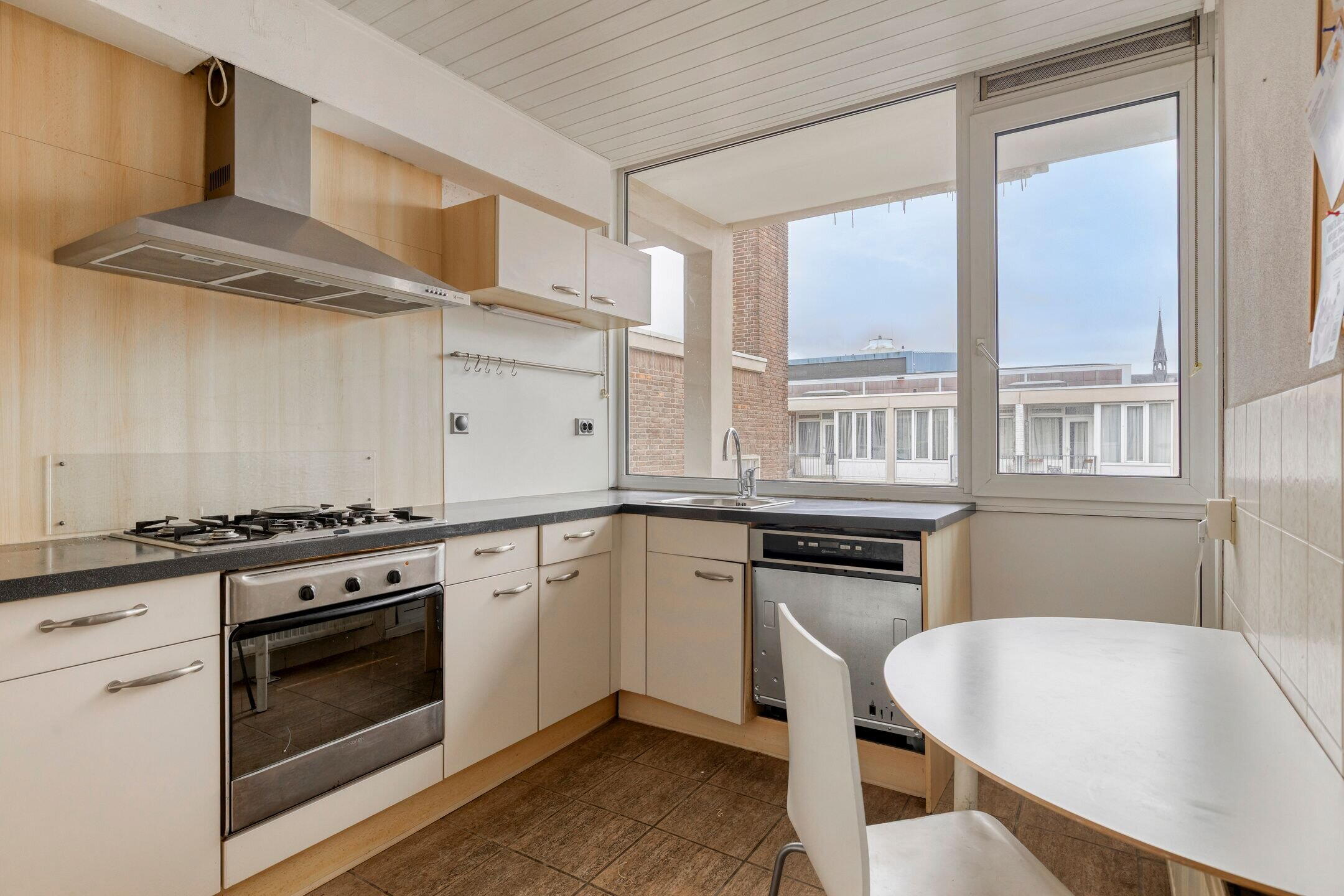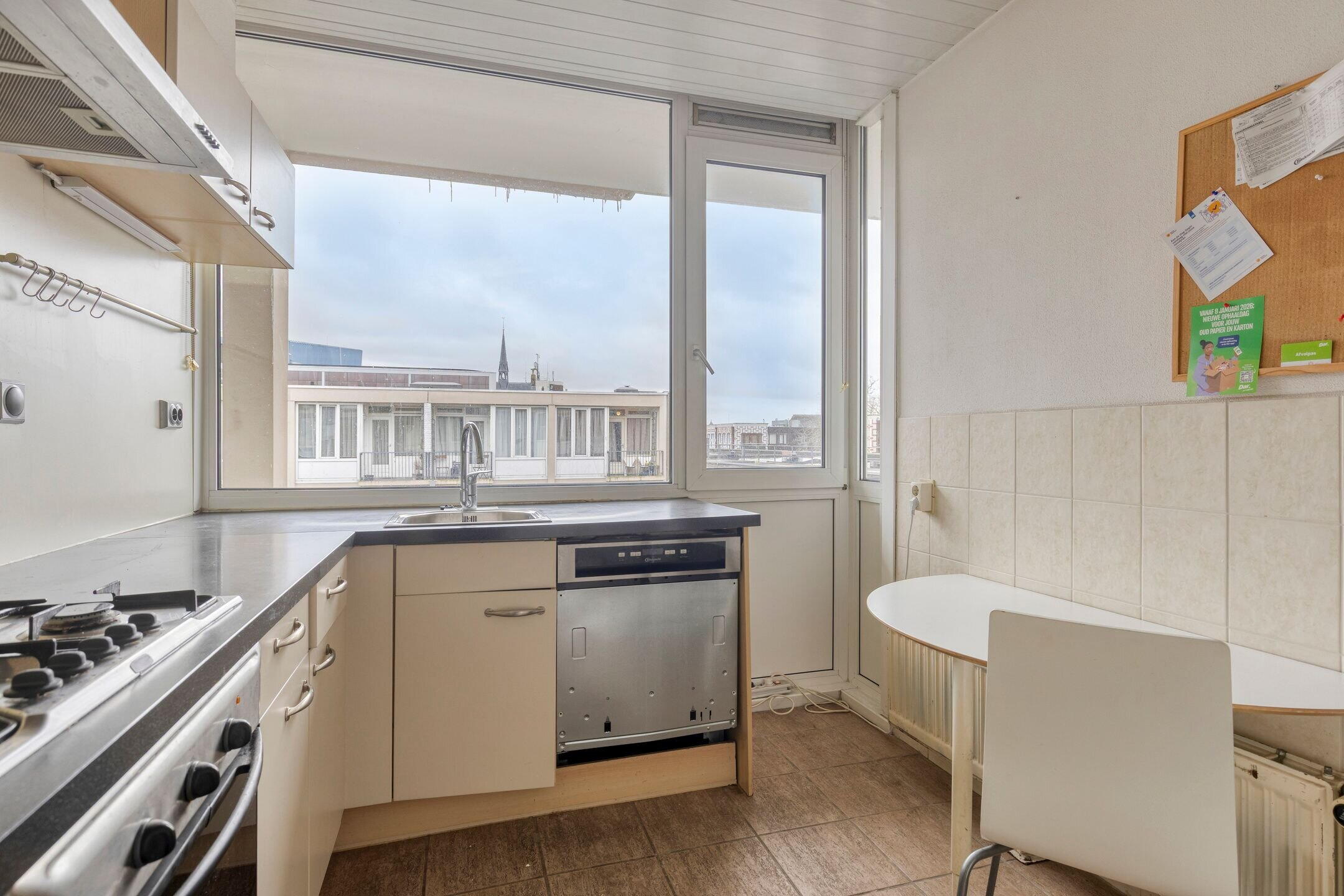 De gezelligheid van het stadscentrum brengt altijd wat reuring terwijl je op deze bovenste etages toch echt behoorlijk rustig zit. De keuken, één van de slaapkamers en het balkon liggen in complete stilte aan de achterzijde; de zuidzijde.