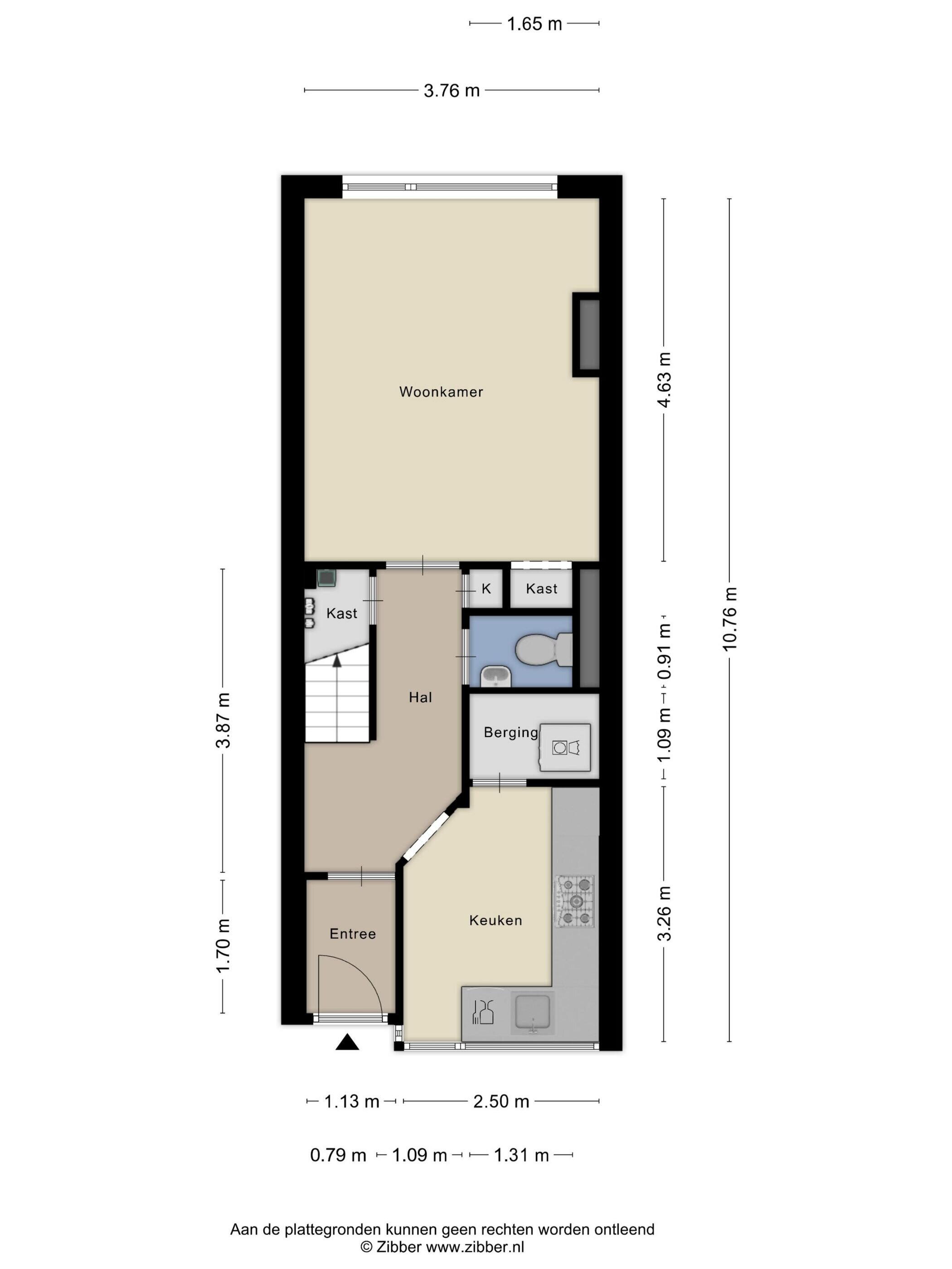 Begane grond: overdekte portiek met entree en intercom. Hal met brievenbussen en deur naar het trappenhuis. Vanuit het trappenhuis kun je de onderverdieping bereiken alwaar je eigen kelderberging is. Deze berging is via de Raadhuisstraat ook makkelijk via een inpandige hellingbaan bereikbaar, zodat het binnen stallen van je fiets een makkie is.